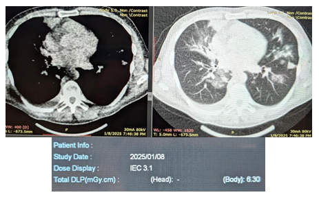 This technique shows promise for broader clinical application, particularly given the low effective dose range of 0.011–0.8 mSv achievable with ULDCT, which is well below the effective dose of conventional chest CT. Enhanced by modern dose-reduction methods like current modulation and iterative reconstruction, ULDCT may serve as a practical and safer imaging option for patients requiring frequent follow-up scans (Figure 1).1-3