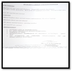 S.L T.D.S for 1 month. The dose of Allopathic medicines has been reduced. Anti-Hypertension medicine has been reduced form 3 tablets per day to only ½ tablet at night as B.P is constantly normal. Tab. Ecosprin is going on only now. |