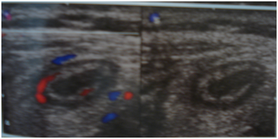 Our clinical experience of the most frequent in pediatric emergencies of the Emergency Department in our hospital with symptoms of acute abdomen pain. Fifty children exanimate in our emergency department in the last 2 years with acute abdomen pain. Main age was 10 years old (6 to 14). Thirty-six of them had a pathological ultrasound report (Figures 1–5).