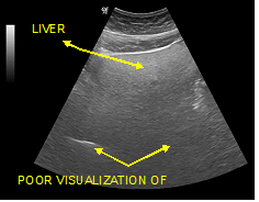Figure 7 Poor visualization of the deeper parts of the organ and inability visualization of the diaphragm. (Grade III of fat filtration).