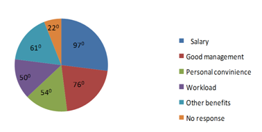 Ndani,10 found out that working near home and relationships with pupils and other teachers motivates teachers to use play as a medium of instruction. Her findings are in harmony with the personal convenience and interpersonal relationships discussed above. While her study is limited to satisfaction of teachers to help pupils learn better, this study was more on teachers’ level of motivation to use play as a medium of instruction and participate in children’s play activities. For effective performance of teachers, they require good motivators cited above. Further, Waithaka,4 observed that, good learning atmosphere, management and salary paid on time to be satisfier of preschool teachers. In addition to the above, this study identified community recognition for good work, manageable workload and other benefits as motivators of preschool teachers. The same information is represented in the pie chart below Figure 1.