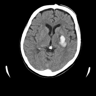 A 57-year-old woman developed a hemorrhage of approximately 30×18 mm in the left capsular region (lenticulostriate artery), and pain and numbness in the right half of the body at age 53years (Figure 1). The modified Rankin Scale (mRS) was 4. The patient was able to walk, but due to pain, numbness and allodynia, she had a spastic gait and difficulty lifting her legs. She suffered frequent pain and numbness in the upper limbs, even at rest. She had no muscle weakness in the upper and lower limbs, and could maintain motor function in daily life; however, she had complaints of slow gait, numbness, pain and decreased sensation.