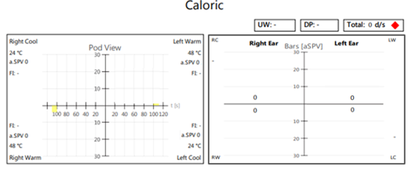 Figure 4 Absent responses to bithermal caloric irrigations, bilaterally, indicating complete bilateral vestibular loss with resulting significant balance dysfunction.