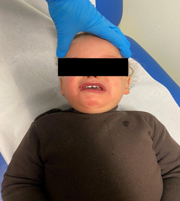 The clinical case in question concerns an 18-month-old Caucasian male patient, how was born through eutocic delivery, without complications. When he was 15 months old, his parents noticed a deviation in the opening of his mouth and the closing of the right eye. PFP was diagnosed. As the apparent cause could not be ascertained, it was considered idiopathic. When he arrived at our physical medicine and rehabilitation consultation, he had already undergone six weeks of corticosteroid therapy and started physiotherapy. On assessment, we confirmed facial asymmetry with difficulty opening the mouth on the right, causing visible asymmetry, especially when smiling or crying. The asymmetry during crying can be seen in figure 1.