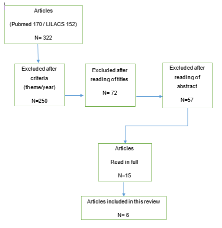 This review aims to identify and analyze scientific evidence on the challenges of implementing the rapid response team, according to the available literature. From the proposed search, and application of the inclusion and exclusion criteria, the final sample of 6 articles was reached. The flowchart below shows the selection steps for articles included in this review, according to the Preferred Reported Items Systematic Review and Meta-Analyses- PRISMA- method adapted for this review Figure 1.