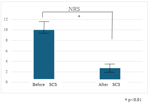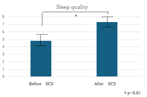 Method: Spinal cord stimulation trial was conducted from 2023 to 2024 and a prospective study was conducted. Fifteen patients (6 male, 9 female) were evaluated on whether they could run after spinal cord stimulation therapy using the average walking time (seconds) when walking 210 cm and the Numerical Rating Scale (NRS) for pain assessment. Patient satisfaction was rated on a 5-point scale, with 5 being very satisfied, 4 somewhat satisfied, 3 normal, 2 somewhat dissatisfied, and 1 very dissatisfied. Sleep quality was rated on a 10-point scale. Statistical t-test was used and P < 0.01 was considered a significant difference.