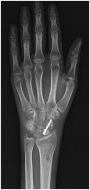 Preiser's1 Disease is the vascular necrosis of scaphoid bone and it is less common than other a vascular necrosis. Idiopathic a vascular necrosis of the scaphoid was first described in 1910 by Preiser.1 Generally, these abnormalities of bone perfusion are mainly due to trauma, prolonged use of corticosteroids, chemotherapy, systemic disease, or scaphoid hypoplasia.2–4 This disease develops insidiously beginning with pain and sometimes swelling around the anatomical snuffbox, which may be associated with loss of strength and reduced range of motion in the wrist. This disease frequently involves progression to carpal collapse and osteoarthritis after fragmentation or pathological fracture of the scaphoid.5