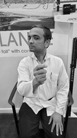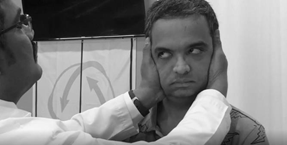 Smooth pursuit was tested in neutral and compared with neck torsion position. The patient was asked to fix his gaze on the moving pointer finger of the examiner Figure 10. Abnormal gaze pursuit in neck torsion position might suggest the examiner to consider involvement of neck immobility as cause of dizziness. Pt did not report of dizziness while the test was performed but reported that this position often caused a sensation of disequilibrium while at work.