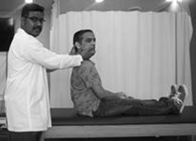Treatment continued with manual therapy to the upper and mid cervical paraspinals and joint mobilization to improve OA forward nodding and AA rotation.3 The first visit concluded with Brandt Daroff exercises14 for home. This involved the patient seated in an upright position. He was then moved into a side lying position on to one side with the nose pointed up at about a 45-degree angle. He was made to remain in this position for about 30 seconds. He was then moved back to the seated position and the same maneuver was repeated on the other side Figure 15.