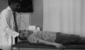 Dix-Hallpike test: The patient’s head was turned 45 degrees and the patient was instructed to lie down quickly, allowing the patient’s head to be in a 30-degree extension position Figure 7a & Figure 7b. This position was maintained for about 1 minute while the pupils were observed for nystagmus with regards to direction and duration. This test was done to identify the presence of anterior and posterior canal BPPV. The testing was negative.
