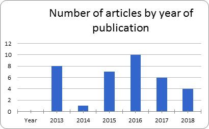 The evolution of the annual publication of selected papers in the international pursuit can be seen in Figure 1, where it is possible to note that articles involving the subject matter in this work have been published in recent years. Thus, it is observed that the subject is recent and large fields of possibilities to explore. 35 (thirty five) selected works included in the references of this study.10–44 However, they are not mentioned in the text due to the extensive amount.