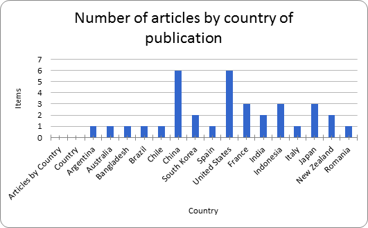 Figure 2 shows the number of journal articles published by countries. The published works are from different countries such as: Argentina, Australia, Bangladesh, Brazil, Chile, China, South Korea, Spain, USA, France, India, Indonesia, Italy, Japan, New Zealand and Romania. Thus, it appears that most found jobs that involve the use of computer vision applications for wheelchairs are from developed countries, including found only one study that addresses this issue in Brazil.
