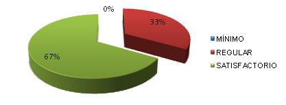 Interpretation: The work of the 30 educators was monitored in the 15 selected Municipal Children's Centers of the Dimension HAPPINESS (Social Skills Related to Managing Feelings). They were recorded in the Observation Guide; Compliance with the Room and Conduct Activity of girls and boys. Obtaining the following results: no educator demonstrated working with a minimum level registering 0%; 10 educators showed work at a regular level 33% and 20 educators worked at a satisfactory level67% (Table 2) (Figure 2).
