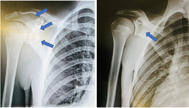 Physiotherapy should be started as soon as possible, mainly to prevent adhesive capsulitis. It is advisable to start moving the shoulder within the first week of injury to minimize the risk of shoulder and elbow stiffness. Rehabilitation typically involves six weeks of the active and active-assisted range of motion; strength training begins approximately 3-4months after injury or surgery.5 The patient has started a rehabilitation programme focused on gaining joint range of motion and muscle strength and so far, recovery has been good. Return to competition is expected between 6 months to one year after the fracture.