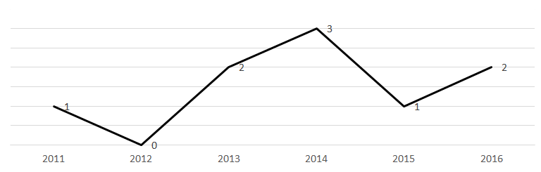 The oldest article dates from 2011 and the most current one from 2016. The year that had the greatest amount of publication on the subject was in 2014, in which it reached 33.3% of the total amount of publication (Figure 2).
