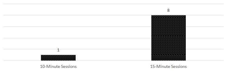 In the analysis of the types of intervention, it was observed that 88.9% of the publications used the traditional method of physical exercise: duration of 15 minutes and basically exercises of stretching and some sessions with dynamics and play activities. In the only study with 10-minute sessions, a different structure of the classes was observed, with an initial part with warm-up exercises, main part with exercises of flexion or muscular reinforcement, and the final part with stretching exercises or relaxation activities (Figure 4).