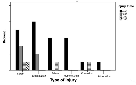 The correlation based on the Pearson statistic showed a level of association between high and moderate, as shown in Table 1, finding that sports injuries are a risk for the health of athletes.