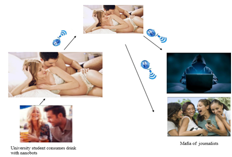 The criminal secretly administered, to the female university student, the brain nanobots through food and drinks; once they are ingested they connect to the neurons and act as “TV antenna”; the brain information is transmitted via wi fi directly to computers or cell phones. Mafias of journalists obtain their booty: University student sex life.