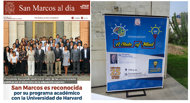 In the National University of San Marcos, the School of Administrative Sciences is one of the main promoters of “innovation” and organizes suspicious visits of US radiologist like Gregory Evans41 in order to participate in “innovation fairs” like “ideando San Marcos”42 giving lectures that promote “innovation" and giving computers. Given the used transhumanist terminology, they would have as actual objective to seek university students for brain mapping and human robotization (Figure 5).