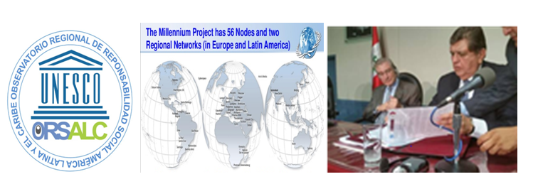 Figure 6 The United Nations: Organizing the world organized crime network of the Brain net From left to right: UNESCO and its unusual advertising: “eyes”, “observatories” The Millenium Project is Troya Horse of Brain net mafia. Alan García Perez with Jeromy Glenn, President of the Project Millenium, organizing the Node Peru.