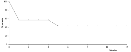 All patients noted the complete disappearance of pain immediately after the procedure. An early recurrence of pain intensity (earlier than two weeks) occurred in 3 patients. In the other patients, the effect duration was from 4 months to more than one year. The absence of pain has allowed these patients to discontinue basic analgesic therapy. In general, four patients experienced pain of the same localization and intensity during the year. The distribution of recurrence time is shown in Figure 4.