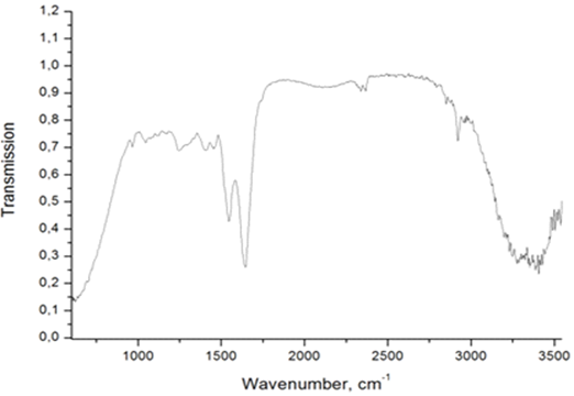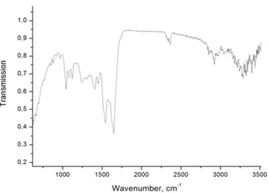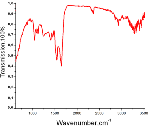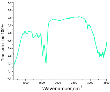 Figure 6 Infrared spectrum of skin after exposure of hand to polarized light of "Bioptron" apparatus for 10 min.