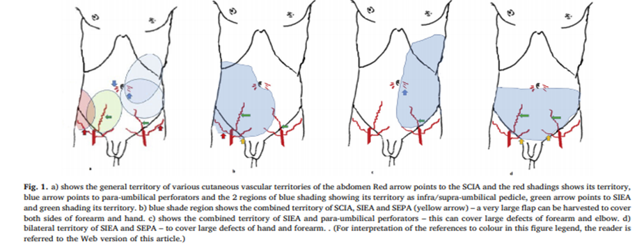 However in centres where microsurgery facilities are not available or where the patient cannot afford such services the pedicle flaps continue to have an important role. in spite of all the attractiveness and plaudits associated with free flap surgery there is indeed some interesting Literature that states that the long term outcomes of successful Pedicled Flaps are equal or even better than free flaps.4 As a result, Abdominal Flaps together with the Groin Flaps continue to be the workhorse flaps in the developing world as well as at our centre for major hand injuries with tissue loss.