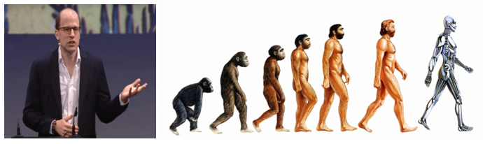 Nick Bolstrom, president of the world transhumanism association, (Left) according to the transhumanists, the end of the human evolution is the cyborg.