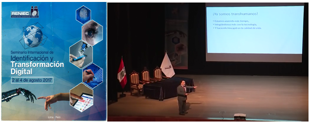 Jorge Luis Yrivarren, Head of the National Registry of Identification (RENIEC) in Peru, seeking subliminally to convince the Peruvians about the benefits of the brain chips as identity document and of the transhumanism in a lecture in the Universidad Nacional Mayor de San Marcos.