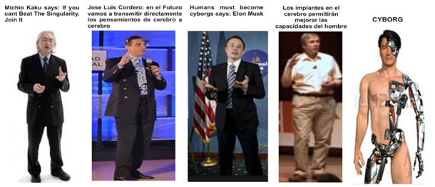 The promoters of transhumanism as Michio Kaku, Jose Luis Cordeiro, Elon Musk and Kevin Warmick do not use the risky brain implants that promote, they do not “download their mind” with the brain net, as they recommend, Despite this technology already exists. Representation of a Cyborg (Right)