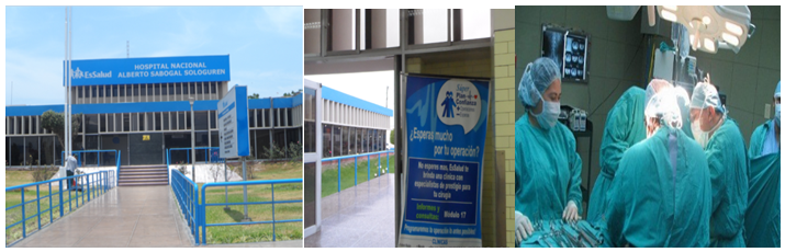 In Latin America, there would be a hospital network where the transnational transhumanist companies would be applying technological implants in surgeries; one of the main suspects is the Alberto Sabogal Hospital in Peru due to its proximity with the NAMRUD-6, USA Navy base in Peru. The figure shows Alberto Sabogal Hospital building the unusual massive campaigns of surgeries with transhumanist advertising (+, -) and the surgery room