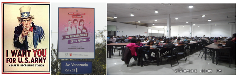 Unusual advertising with military subliminal message of the César Vallejo University (UCV), similar to the North American advertising to recruit the US Army; Library of the César Vallejo University is the main place where terrorist network of journalists of peruvian newspaper “El Comercio” would be doing cerebral mapping in university students to obtain the algorithms of the human brain and to realize mental control for human robotization.