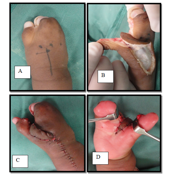 The dorsal rotational advancement flap modification by Ghani2 have been utilized to achieve good widening of the first web, but as the apex of the flap retracts proximally during healing, some recurrence of web narrowing can occur.