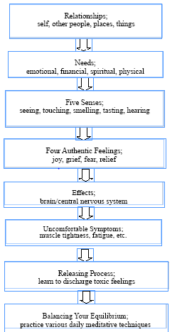 real nervous souls experience bodily stress racing everywhere (Acronym for 8 steps). R, relationships; N, needs; S, five senses; E, emotions; B, bodily; S, symptoms; R, releasing process; E, equilibrium balanced. every feeling soul prospers (Acronym for the four needs that can cause us stress). E, emotional; F, financial; S, spiritual; P, physical; just get for real (Acronym for the four true emotions). J, joy; G, grief; F, fear; R, relief