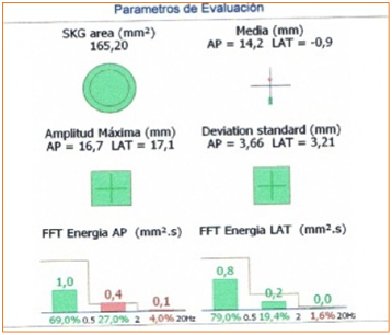 The patient improved the postural control after the therapy shown in the static posturography performed two months after the session end (Figure 2). The follow-up has been one year.