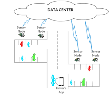 This section describes a solution for the detection and manage available parking lot in a city, called SPANS – Smart Parking Service. S PANS is a service based on image process that will detect available parking lot. Furthermore, these services integrated into an intelligent transport architecture that will provide the structure for detect, manager and notify the drives about this lot. These infrastructure aims to avoid heavy traffic in areas that have parking place thereby reducing the time and the consumption of the fuel and pollution caused by vehicles that search an available lot. The infrastructure uses sensors to perform the sensing of a parking place and cameras to record the activities. Sensors and cameras will be used to detect significant information from the parking so that it is allowed to infer if there are some lots available. Furthermore, this infrastructure consists of a data center (cloud) that provide a good mechanism for data abstraction and image processing, as well as a good communication mechanism between drivers and the sensors. Moreover, the data center will offer a security mechanism which difficult other people have access to the information. The drives will access the data center through a mobile application that can run on a smartphone or tablet. Figure 1 shows and abstraction of the proposal infrastructure used to detect and notify the user about the free parking lot. Therefore, the data center from time to time or when the sensor detects a change in the environment, receives information about the parking place. This information is processed by SPANS that will detect if any parking lot is available. After his processing, the system will provide this information about the available places that the driver can be used to the driver’s application. Once the driver accesses your mobile application, the information will show the place that the drivers can stop their near of their destination. In the following subsections, we describe how the proposal infrastructure was developed as well as the services and equipment. Furthermore, we describe the sensor node in case that the place does not have a structure of cameras that will capture images of the parking lots and information about the available lot.