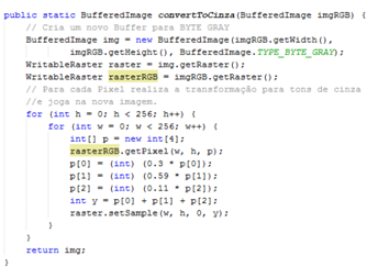 Thus, the first steps the SPANS will load the image that the data dented received from the sensors node. After that the SPANS will convert the image in a matrix MxN, where the row and the column indicate as spatial coordinates in the image, the pixel position. Figure 4 show a color image and its matrix pixel red, green and blue. Posteriorly, the system will transform the color image to the grayscale image. For achieving this, each pixel of the image is read and a grayscale color is calculated in that pixel. The Figure 5 describes a Java algorithm that receives a color image and returns a grayscale image. After this process, the image is passed through a filter called Glaussian Blur14 to smooth the image. This filter is a low pass filter that will let pass the low frequencies, but it will eliminate the values related to the high frequencies. Thus, the effect of this filter is a smoothing of the image, since the high frequencies that correspond to the abrupt transitions are attenuated. Smoothing tends to reduce noise in images.15 The Gaussian Blur uses a Gaussian function that can be described as: