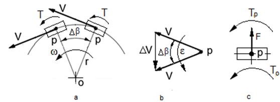 of the radial direction and two inertial torques. The one inertial toque turns the body around its center mass and the second one turns about the fixed point Figure 1c. This statement is validated by the practice and by the circular motion of the moon about the earth that always shows its one side.