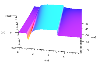 Below are the graphs were taken for analyzing a biological neuron.3,4 Permission was granted by Prof. Eric Newman to use graphs in this paper generated by Meta Neuron.5