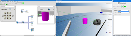 The Robotino View program20 was used to collect initial images for network training and to set up video and image resolution values. Robotino View has a simple interface for connecting to Robotino and using tools to collect and save images and videos, as shown in Figure 2a, Figure 2b shows the position of Robotino when it detected the obstacle. The Control Panel block can be used to bring the robot to any position in the environment. The Camera block activates the camera module, and the Image Writer block is used to save images. In this module, two image resolutions, 320 x 240 and 640 x 480, can be selected, as shown in Figure 2c. The resolution of the collected images for neural network training in this experiment is 320 x 240.