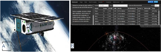 B. Web of asteroids cotizations asterank. source: https://www.asterank.com/).
