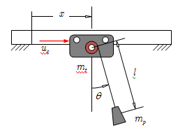 Where denotes the system state vector with as the trolley displacement and as the payload swing angle (Figure 1). ,, and represent the inertia matrix, centripetal-Coriolis matrix, damping matrix, a term derived from potential energy, input control matrix, and force acting on the trolley, respectively. These variables are explicitly defined as follows: