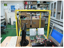 The controllers given by Eqs. (25) & (26) combined with Eq. (34) are implemented on the laboratory crane (Figure 8). The trolley is driven by a direct current (DC) motor, and incremental encoders with 1024 counts per revolution are used to measure the trolley displacements and payload swing angle. The crane system is connected to a target personal computer (PC) with two interfaced cards. An NI PCI-6602 card is used to send pulse-width modulation signals to the amplifiers of the DC motor and acquire signals from the encoders. An NI PCI-6025E multifunction card is used to transfer the direction control signals to the motor amplifiers. The target PC is connected to a host PC through RS-232 ports. The overhead crane is controlled by the host PC, which integrates the presented controller designs based on MATLAB/SIMULINK with xPC target solution.
