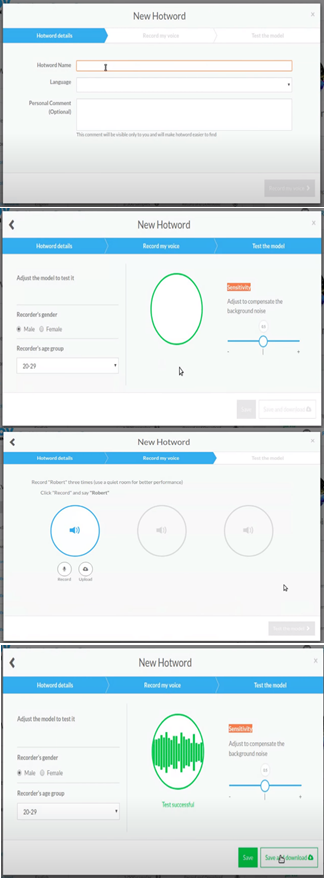 Before we talk about the Implementation, let us divide the Software into 5 main pieces. The first piece is "Activation", so Alice gets activated once it hears the keyword "Hey Alice. The second piece is "Speech-to-text", Alice will start recording what the user is saying then convert it to text. The third piece is "Intent recognition", it will try to figure out the move to the next step. Otherwise, it will ask the user to say that again and go back to the speech-to-text. The fourth piece is "processing and execution", which will try to take the proper action, if any, based on the intent of what has been said. Otherwise, it will also tell the user that it could not take a proper action and request the user to repeat the command again, and then, go back to the speech-to-text part. The last and the fifth piece is "Text-to-speech", at this point, Alice will say something back either it is an acknowledgment or a response to what has been requested. Snowboy is a highly customizable keyword detection engine that is set up to listen in real-time, and is always listening (even when offline) compatible with Raspberry Pi, (Ubuntu) Linux, and Mac OS X. A keyword (also known as wake word or trigger word) is a keyword or phrase that the computer constantly listens for is, a signal to trigger further actions. To start using Snowboy, a keyword must be selected or created.