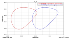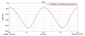 In the simulation with Adams, the angular velocity of the motor driven by the crank is, namely, a motion cycle is 2s. The displacement curve of point D over time at the end of pedal in X-axis direction is shown in Figure 8, the displacement curve of point D over time in Y-axis direction is shown in Figure 9, the trajectory curve of the two pointsandon pedals are shown in Figure 10, and the comparison of normal people and stepping gait mechanism trajectories is shown in Figure 11. From Figure 8, it can be seen that the displacement of point D over time at the end of pedal in X direction is a cosine curve, which is in accordance with the results obtained in the model in the previous section 4.1.The maximum displacements are -39mm, and the minimum displacements are -222mm, It can be concluded that the moving distance of point D at the end of pedal in X direction is 183mm. From Figure 9, it can be seen that the displacement of point D at the end of pedal in Y direction decreases more slowly than that of rising. The maximum displacement is 312mm, and the minimum displacement is 142mm. It can be concluded that the distance of point D at the end of pedal in Y direction is 170 mm in a cycle.