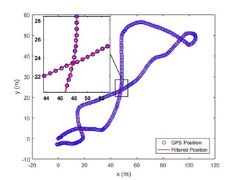 Figure 7 GPS and filtered position Figure 7 show device position measured from GPS and filtered by the UKF algorithm.