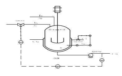 A second-order decomposition reaction occurs in the continuous stirred tank reactor, the reactor is equipped with a heat transfer surface that contains a condensing fluid, so that it remains at uniform temperature. The outlet composition and temperature may vary as a result of disturbances in inlet temperature, inlet composition, and coolant temperature. Material and energy balances, plus supplementary equations, are the basis of the model of the reactor system and a mechanistic approach proposed by Mjalli et al.6 is used. The equations are nonlinear, so that numerical solution is necessary to predict how the reactor will behave from arbitrary initial conditions. However, because we desire to operate the reactor at steady state, it may be sufficient to examine the dynamics in the vicinity of a steady state; hence linear approximations are useful. In order to realize the optimization and control of continuous biodiesel production process, the model used in this work are based on the second-order kinetic model joining the material and energy balance equations as well as the dynamic equation of the coolant temperature, thus giving us the equations.