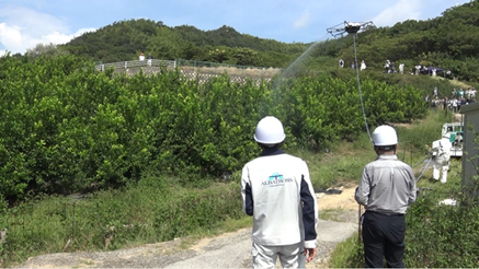 On 19 September 2023, an automatic watering experiment was conducted on Innoshima Island, Hiroshima Prefecture, and on 20 September, a watering experiment was conducted on Ikuchijima Island, Hiroshima Prefecture, using manual control. In these experiments, water was sprayed, but in the future, chemicals will be applied according to the fruit tree and the time of year.