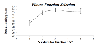 The first simulation was performed with the objective of identifying the best value for α factor in the fitness function. Such function has to maximize the network lifetime by reducing and balancing the energy consumption. We assume that each transmission consumes the same amount of energy. In the simulations, we vary the value of α from 1 to 5. We consider 50 nodes randomly deployed in the monitored area, each one having 50 units of energy able to send 50 data packages. We consider 20 generations on each collecting cycle. Figure 3 presents the results in a plot, while Table 2 highlights the numeric values. We verify function presenting the best results for the test mass considered, with small variations for the functions , and .