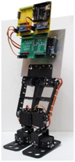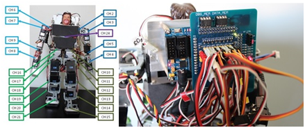 The state of the art of the robotics has contributions both by private companies and by individuals, as well as FPGA (Field Programmable Gate Array) based systems. In robotics, there are very different fields: industrial, healthcare, educational and even hobby. Data which is common in the FPGA-based systems, since in recent years more and more sectors including such devices in their products. To date, it is very often to find control systems based on microcontrollers because of its easy accessibility and its simplicity which does not require great knowledge. Meanwhile, the electronic design using FPGA requires knowledge about these devices, knowledge of languages used for programming and the use of specific tools developed by its manufacturers. Hence, throughout the development of the master thesis,9 the development of a control system based on FPGA which manages a humanoid robot with servos. This system exchanges information with a PC interface acting between the user and the control system. Bluetooth interface is used, contributing with more movement freedom because the robot is released of physical wired connections. A demonstration is provided in Youtube (https://youtu.be/QxWW5MXiIDI) (Figure 2).